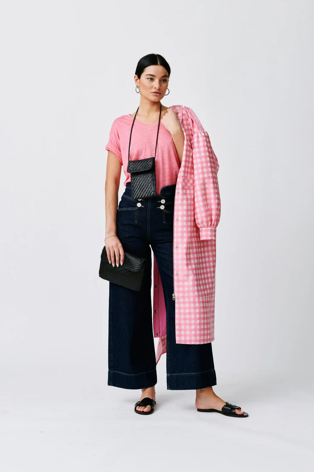 Dragon Diffusions "Phone Crossbody" is the epitome of functional style. Designed for the modern minimalist, the woven leather phone pochette combines the ease of a crossbody with the sophistication of meticulously hand crafted leather weaving. It's size is perfect for securely carrying your phone on the go, making it the perfect accessory for home or away. An antique Saint-Christophe medal, in homage to the parton saint of travellers, is hand-sewn into each Dragon Diffusion bag.
