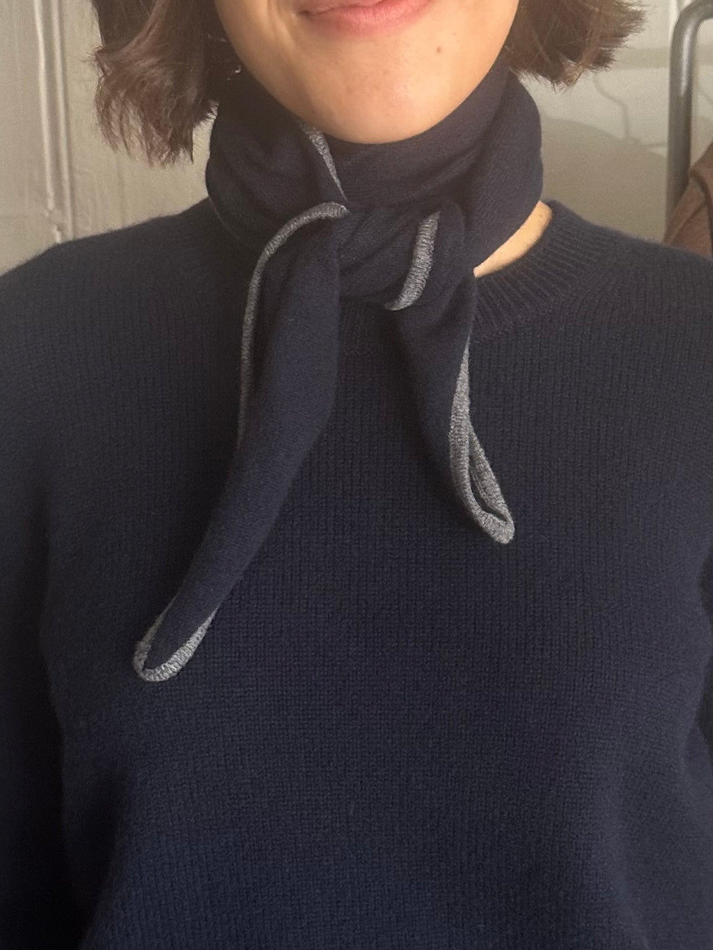 Knot it or wrap it nonchalantly around your neck - Lisa Yang's 'Chelsea' scarf can be worn in a myriad of ways. Crafted from super soft cashmere and subtly detailed with contrasting edges, the slender profile and navy grey hue will complement many of the label's knits.