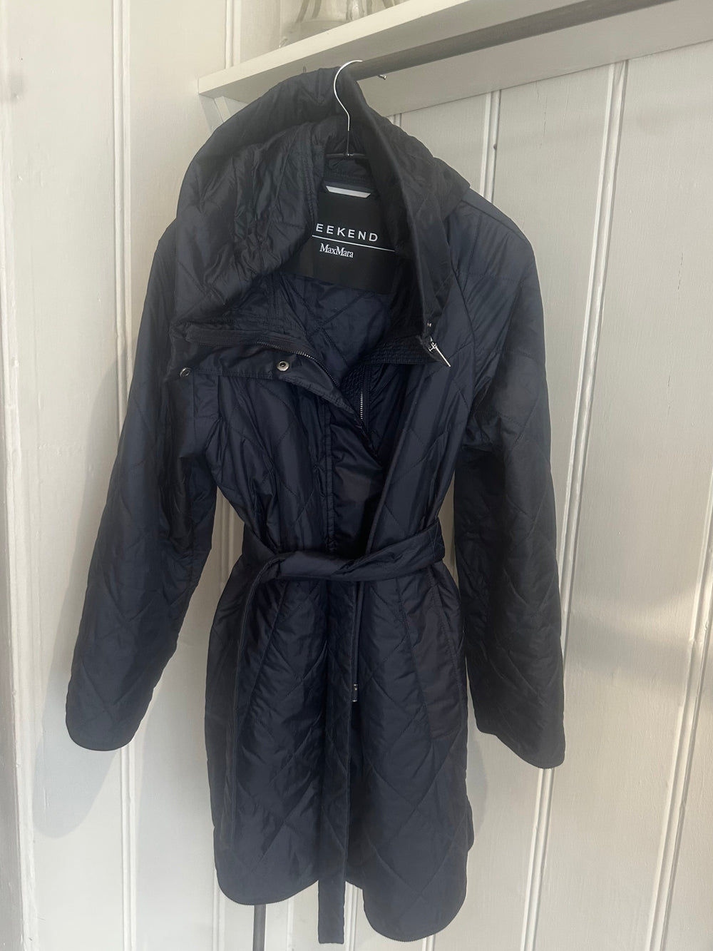 A great little coat from the Italian label. Lightweight quilted parka, years of wear left, navy. Self-tie belt it will fit a uk 8/10.