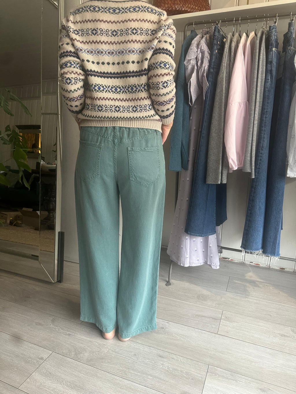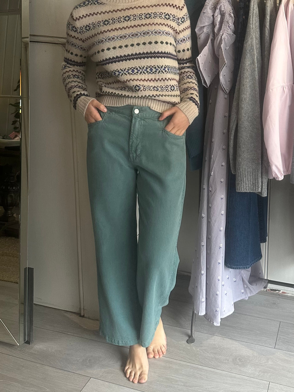 Gorgeous for Spring/ Summer!! From Xirena these relaxed turquoise pants have a small section of elastic at the back. Size M will fit a uk 8/10/small 12 depending on how you like them to look. Kamilla is a UK 8 and is 5'5".
